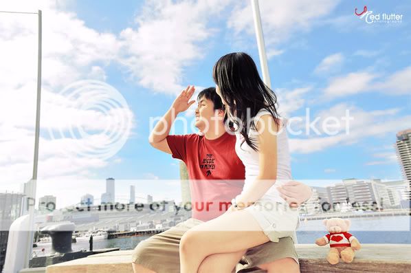 Sisca decided to do another pre wed photos with her printed shirts written "bride" and David's shirts written"The bride is mine". We decided to go to docklands, because the area was not too crowded, and it has lots of restaurant and cafes along the pier.